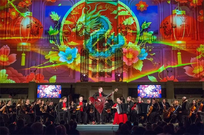 2025年2月6日,俄罗斯音乐家在圣彼得堡举行的中俄新春音乐会上表演。新华社发(莫京娜 摄)